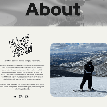 DESIGNED AND DEPLOYED A WEBSITE FOR A COLORADO BASED MUSIC PRODUCER FOR THEM TO PROMOTE THEIR MUSIC, PROVIDE EVENT HIGHLIGHTS, ALLOW BOOKINGS, AND MORE. USERS CAN ALSO LISTEN TO EMBEDDED RELEASES, VISIT SOCIALS, EMAIL IN, AND MORE.